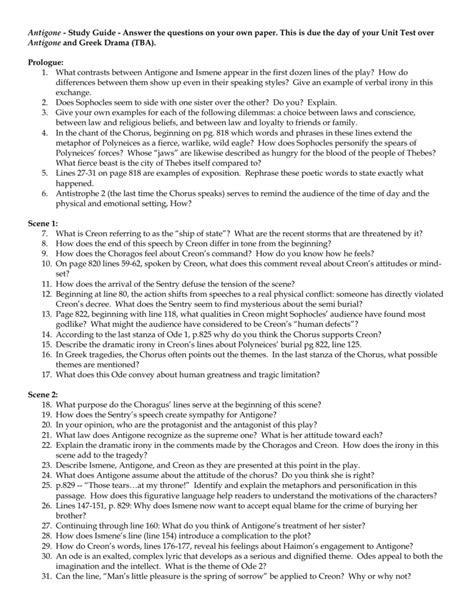 Online PDF MASTERPROSE STUDY QUESTIONS AND ANSWERS ANTIGONE Library Binding ManyBooks